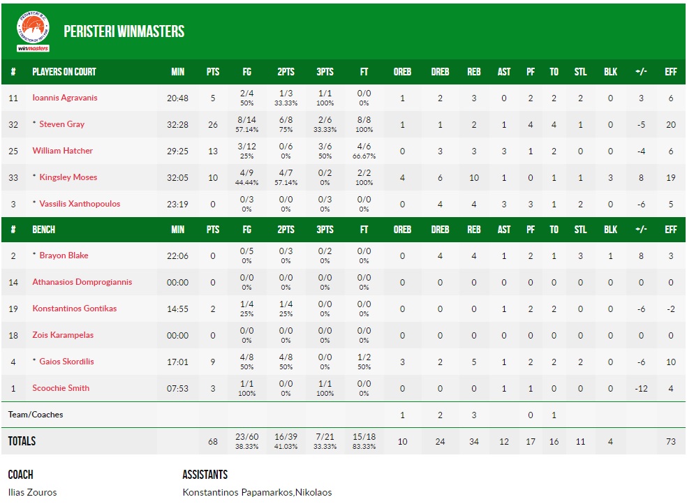 Το Περιστέρι έκανε την ύστατη προσπάθεια να αντιδράσει, μειώνοντας σε 66-65 με τις 3/3 βολές του Γκρέι στο 1:22 για το φινάλε, ο ίδιος παίκτης έκανε το 71-68 με τρίποντο στα 9″ όμως οι νησιώτες άντεξαν στην πίεση κι επικράτησαν με 72-68.