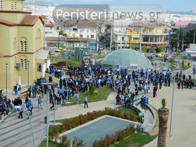 Στην πλατεία Περιστερίου έχουν μαζευτεί οι φίλαθλοι του Ατρομήτου που θα φύγουν όλοι μαζί για το ΟΑΚΑ.