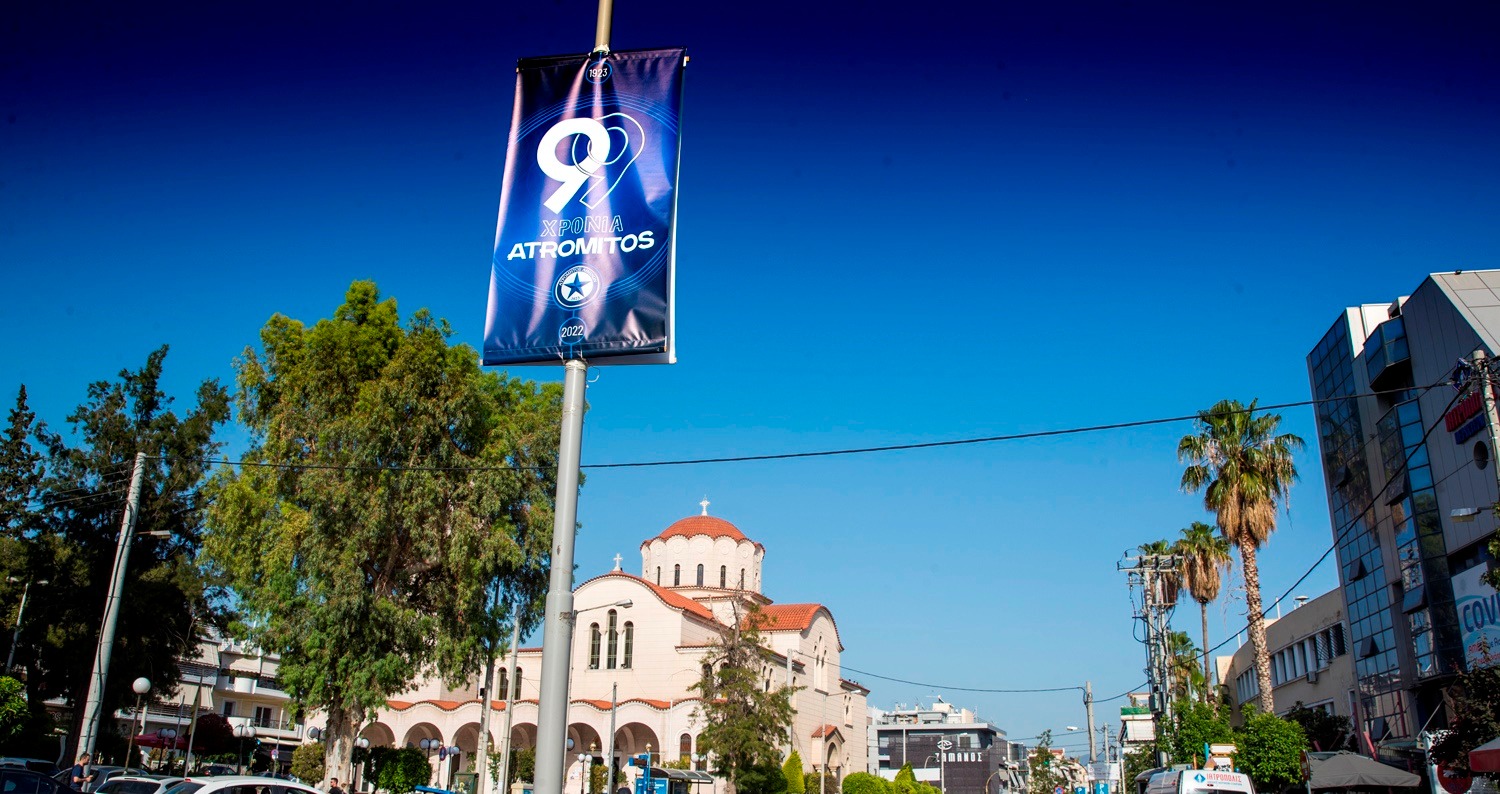 Σε πολλά σημεία της πόλης έχουν αναρτηθεί πανό για τα 99 χρόνια της ομάδας, μιας και την Τρίτη 31 Μαΐου είναι και τυπικά τα γενέθλια του Ατρομήτου.