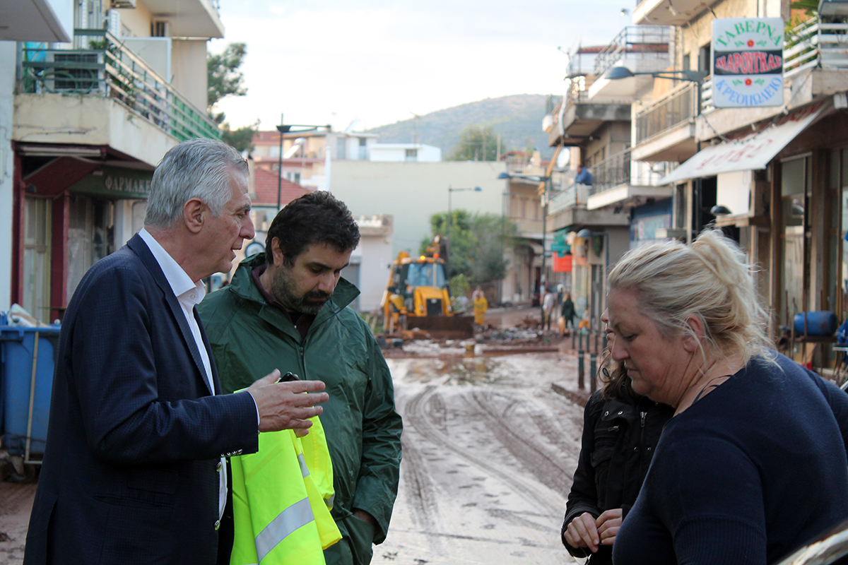 Ο Δήμαρχος είδε ιδίοις όμμασι τις απίστευτες καταστροφές που συνέβησαν στην περιοχή της Δυτικής Αττικής και δήλωσε την αμέριστη συμπαράσταση του και στήριξη στη Δήμαρχο Ιωάννα Κριεκούκη, η οποία τον ευχαρίστησε για την προσφορά του Δήμου Περιστερίου.