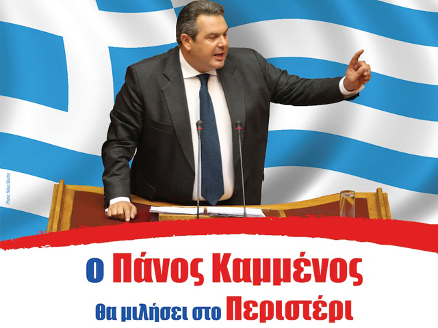Στο ΚΥΒΕ Περιστερίου θα μιλήσει ο Παναγιώτης Καμμένος το Σάββατο 9 Μαρτίου στις 9:30 πμ.