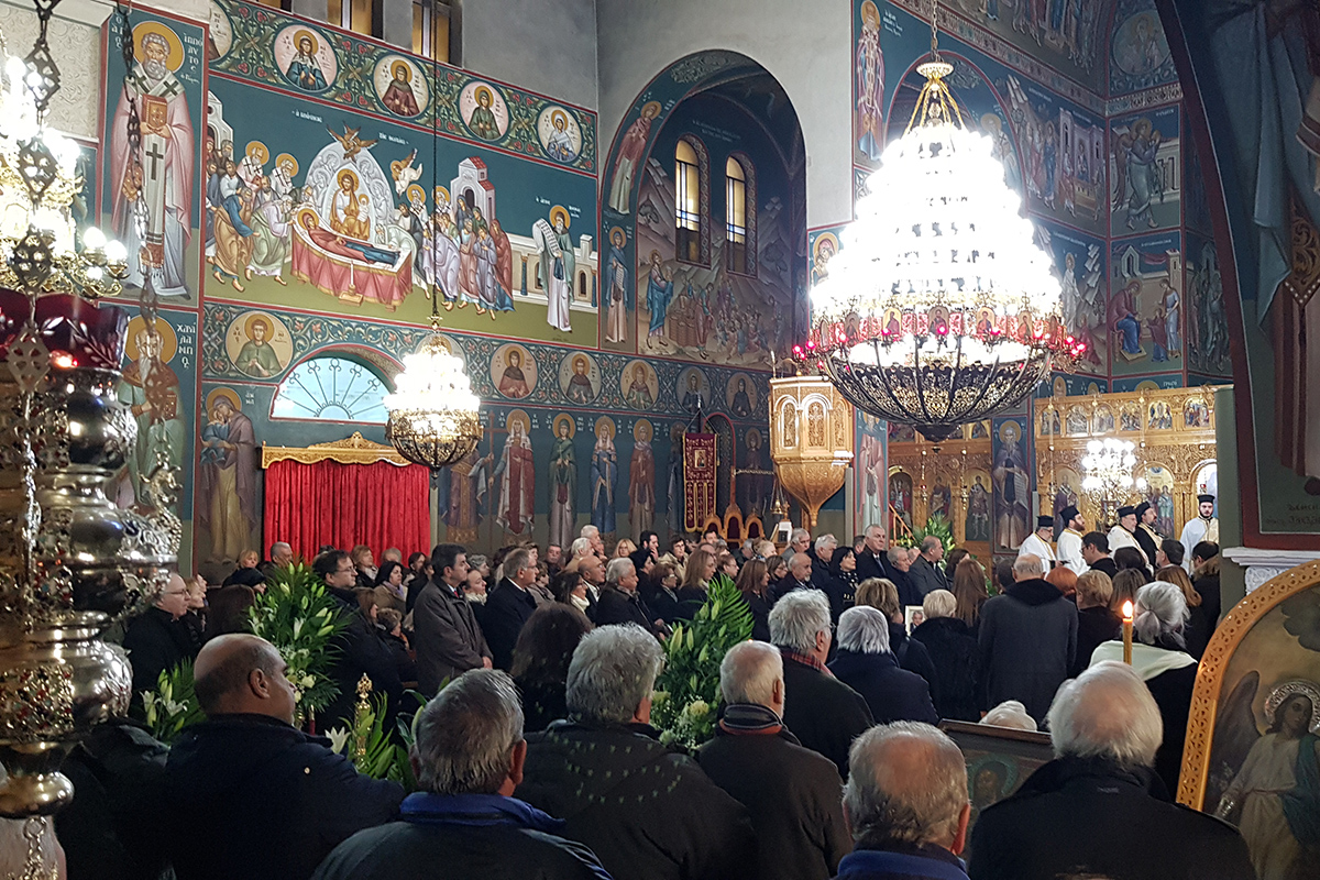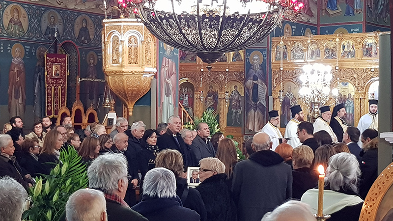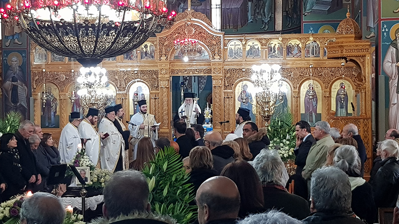 Συγγενείς και φίλοι είπαν σήμερα το μεσημέρι, το τελευταίο αντίο στον Κώστα Λαλένη στον καθεδρικό Ι.Ν. Παμμεγίστων Ταξιαρχών Μάσχα Περιστερίου.