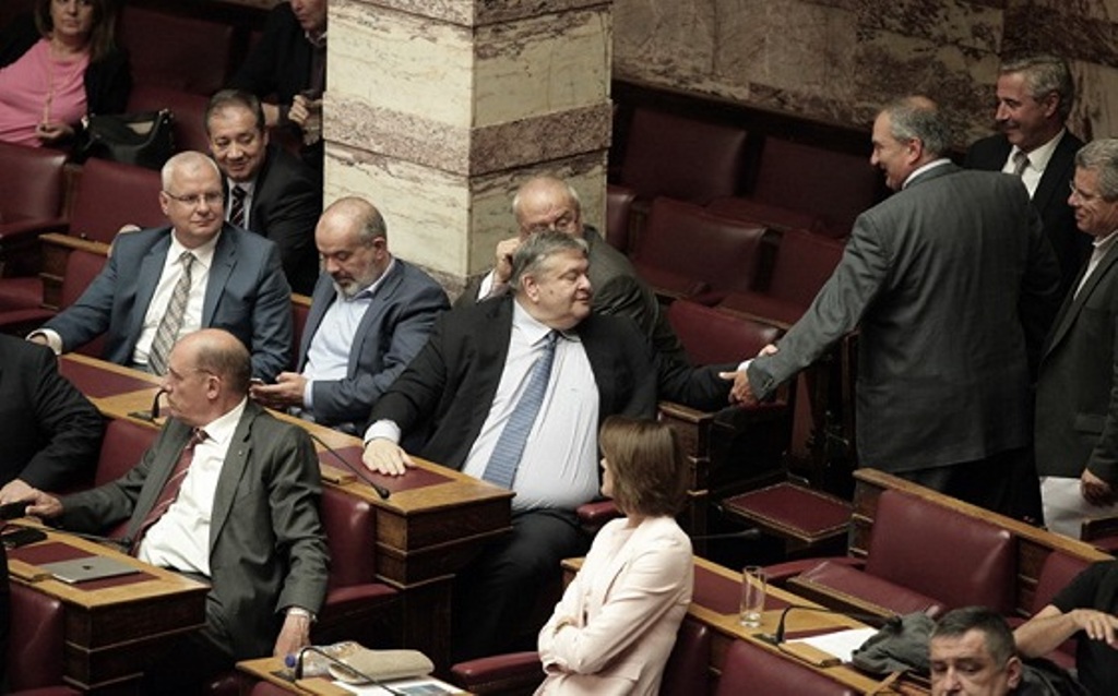 Λίγο πριν υπερψηφιστεί στην Ολομέλεια το πολυνομόσχεδιο με τα μέτρα και τα αντίμετρα της συμφωνίας για το κλείσιμο της αξιολόγησης και ενώ ο Ευάγγελος Βενιζέλος παρακολουθούσε προσηλωμένος τη συζήτηση, πέρασε ο πρώην πρωθυπουργός Κώστας Καραμανλής και… του τσίμπησε το μάγουλο!