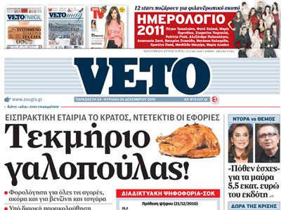 Λόγω έλλειψης χρηματοδότησης, όπως ανακοίνωσε ο Μάκης Τριανταφυλλόπουλος στους επιτελείς της εφημερίδας, η VETO σταματά την κυκλοφορία της.