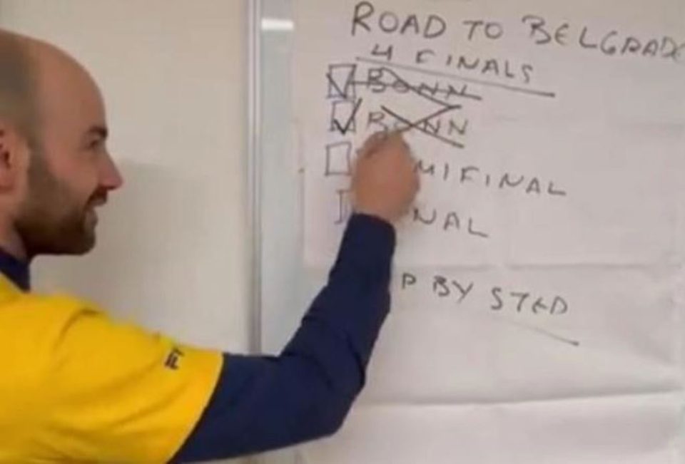 Το μότο «βήμα-βήμα» αποτυπώθηκε στον πίνακα που ήταν κρεμασμένος. Ο τεχνικός του Περιστερίου κατόπιν παρότρυνσης των υπολοίπων «έσβησε» με ένα μεγάλο «Χ» το όνομα της Βόννης «τικάροντας» παράλληλα τη νίκη, ενώ από κάτω είναι κενά τα «κουτάκια» του ημιτελικού και του τελικού του Final Four στο Βελιγράδι!