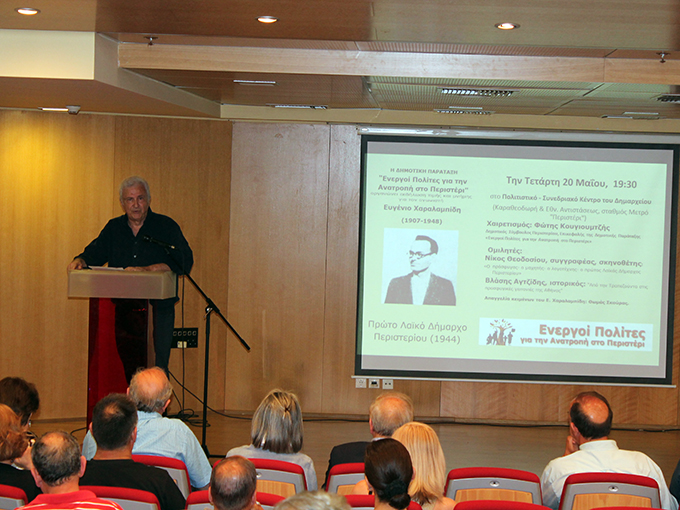 Μέσα σε μια συγκινησιακή ατμόσφαιρα η δημοτική παράταξη των Ενεργών Πολιτών τίμησε τον αγωνιστή Λαϊκό Δήμαρχο Περιστερίου Ευγένιο Χαραλαμπίδη.