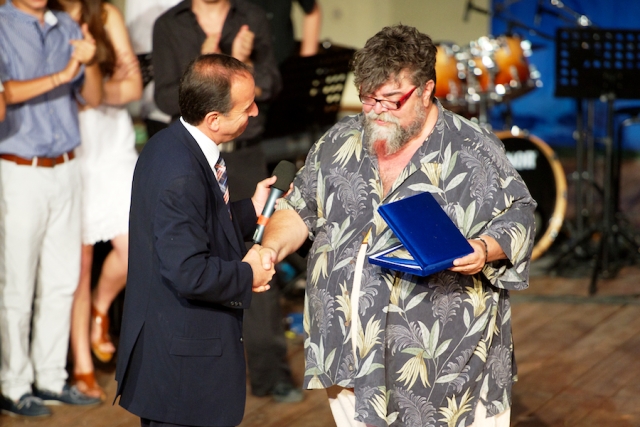 Ο Σταμάτης Κραουνάκης παραλαμβάνοντας την τιμητική πλακέτα που του πρόσφερε το σχολείο έκλεισε την παράσταση λέγοντας: «Είμαι πολύ συγκινημένος γιατί, εν ζωή, κατάλαβα ότι θα είμαι ζωντανός μετά το θάνατό μου…»