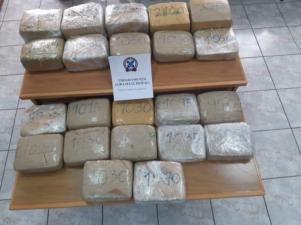 Είκοσι δύο αυτοσχέδιες συσκευασίες που περιείχαν ακατέργαστη κάνναβη, συνολικού βάρους 28.205 γραμμαρίων, μετέφεραν με το αυτοκίνητό τους στην Εθνική Οδό Αθηνών Κορίνθου δύο άτομα -ένας 45χρονος αλλοδαπός και μία 53χρονη ημεδαπή- που συνελήφθησαν από άνδρες της Υποδιεύθυνσης Ασφάλειας Πειραιά.