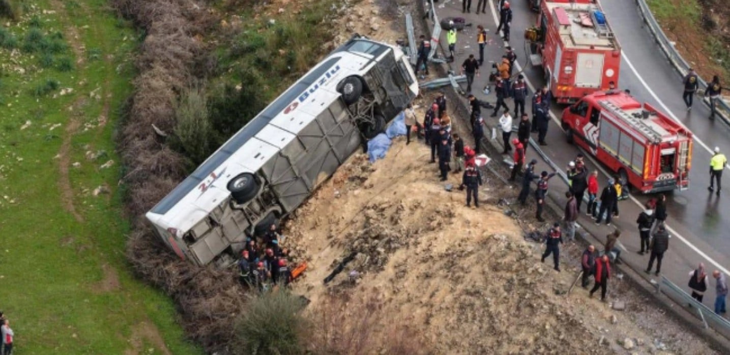 Το λεωφορείο, που μετέφερε 34 επιβάτες από τη Ραιδεστό (Τεκίρνταγ) προς την Αττάλεια, ανατράπηκε το πρωί της Κυριακής στις 10:20 (09:20 ώρα Ελλάδος) σε αυτοκινητόδρομο που έγινε ολισθηρός λόγω της βροχής, ανέφερε ο κυβερνήτης.