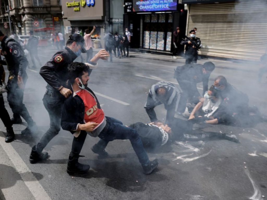 Οι ειδικές αστυνομικές δυνάμεις, αλλά και αστυνομικοί με πολιτική περιβολή, συγκρούστηκαν με ηγέτες εργατικών συνδικάτων και άλλους διαδηλωτές, πετώντας μερικούς από αυτούς στο έδαφος, πριν τη σύλληψη δεκάδων διαδηλωτών κοντά στην πλατεία Ταξίμ της Κωνσταντινούπολης, όπως έγινε γνωστό από το Reuters.