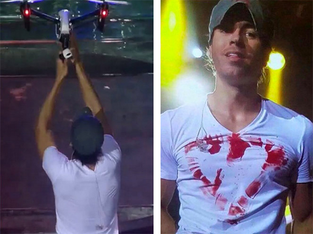 Ο Ιγκλέσιας θέλησε να το στρέψει προς τη μεριά του κοινού. Κάτι πήγε στραβά, και το ελικοπτεράκι τον τραυμάτισε σοβαρά στα δάχτυλα.