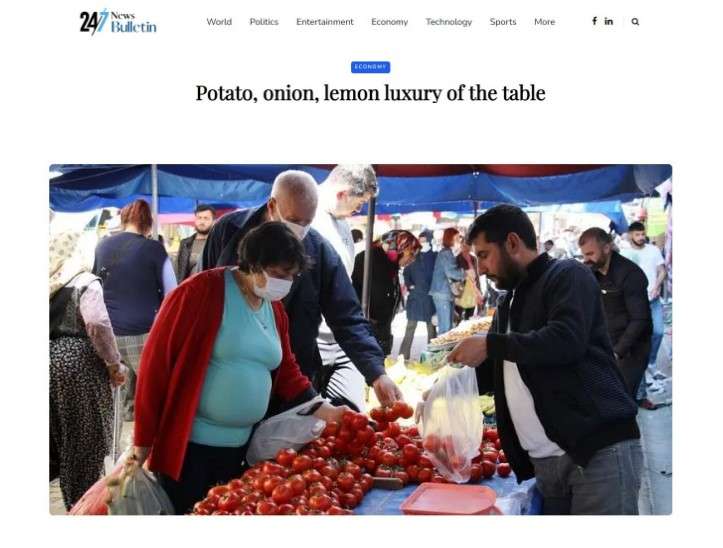 Αναλυτικά: «Η τιμή της πατάτας και του κρεμμυδιού είναι σαν του χρυσού. Κοιτάζουμε τις τιμές και απορούμε. Κάποτε η πατάτα ήταν το φαγητό του φτωχού. Σήμερα με τέτοιες τιμές δεν αγόρασα καν», τόνισε μια νοικοκυρά της χώρας. «Δεν χαμογελάει έστω ένας άνθρωπος που έρχεται στη λαϊκή. Χάλασε η ψυχολογία του, η ισορροπία του κόσμου. Ντρεπόμαστε να πουλήσουμε αυτά τα προϊόντα σε αυτές τις τιμές» ανέφερε χαρακτηριστικά πωλητής σε λαϊκή αγορά περιγράφοντας τη δύσκολη κατάσταση της αγοράς στην Τουρκία.