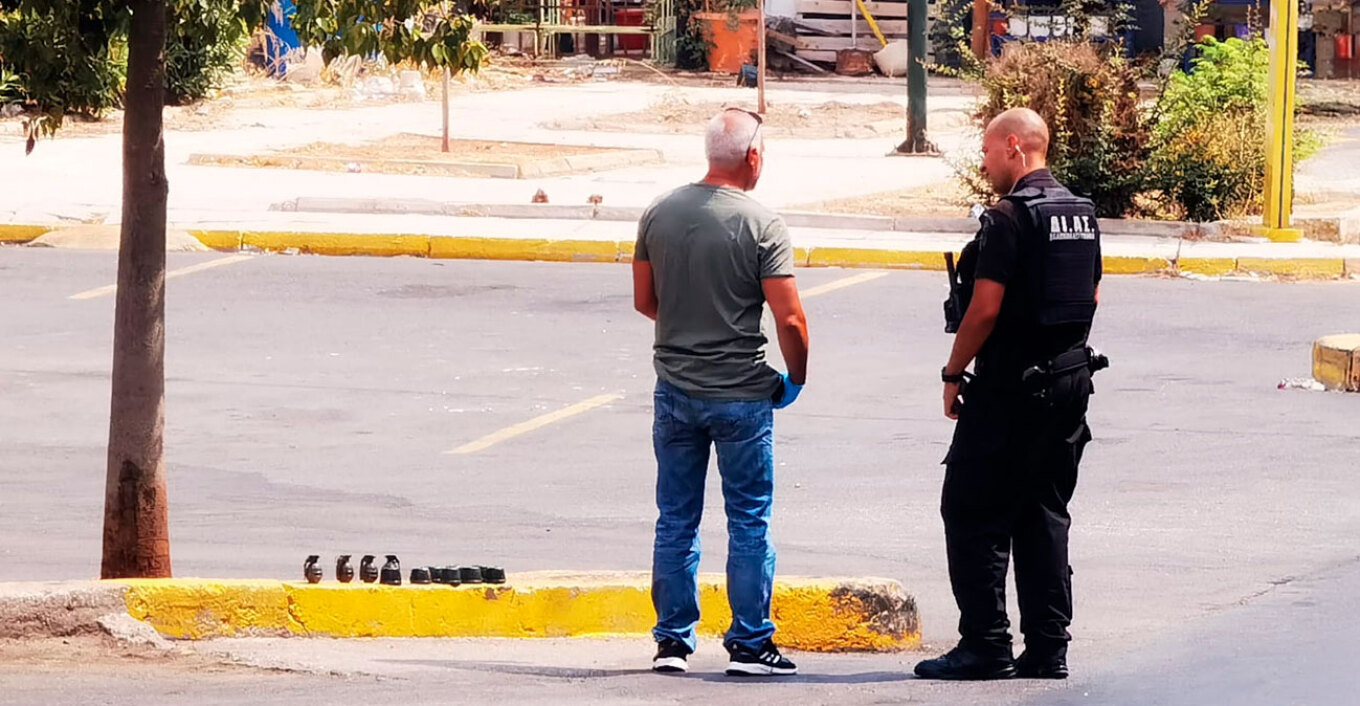 Οι Αστυνομικοί τους ακολούθησαν και στη συμβολή των οδών Αναπαύσεως και Πλάτωνος τα άτομα πέταξαν στο δρόμο ένα τσαντάκι το οποίο είχε μέσα τέσσερις χειροβομβίδες.