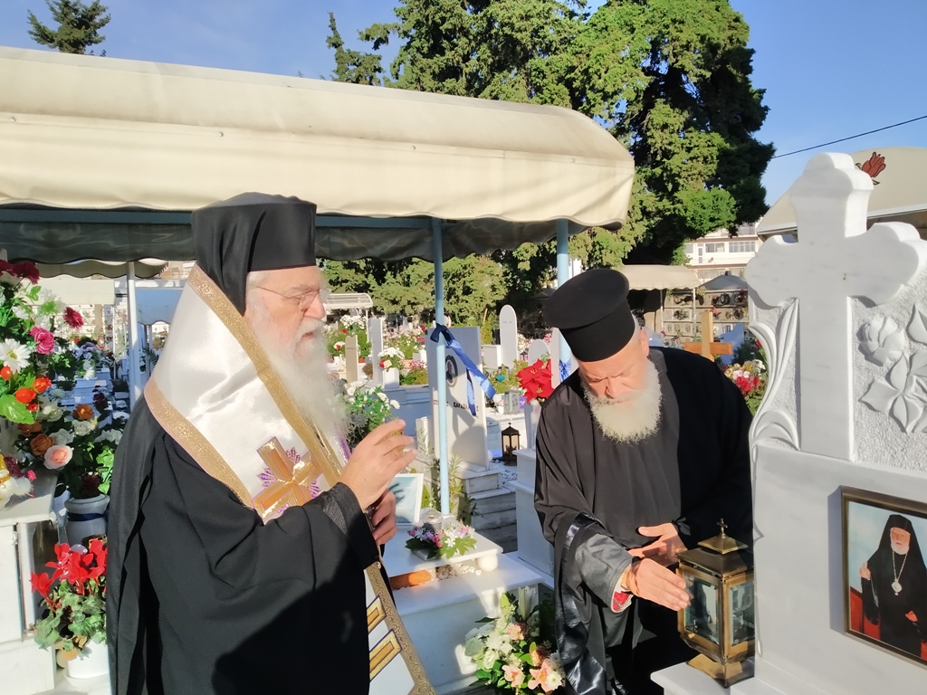 Ο Σεβασμιώτατος άναψε το καντήλι του μακαριστού Ιεράρχου και εναπόθεσε άνθη εις το μνήμα του προκατόχου του.