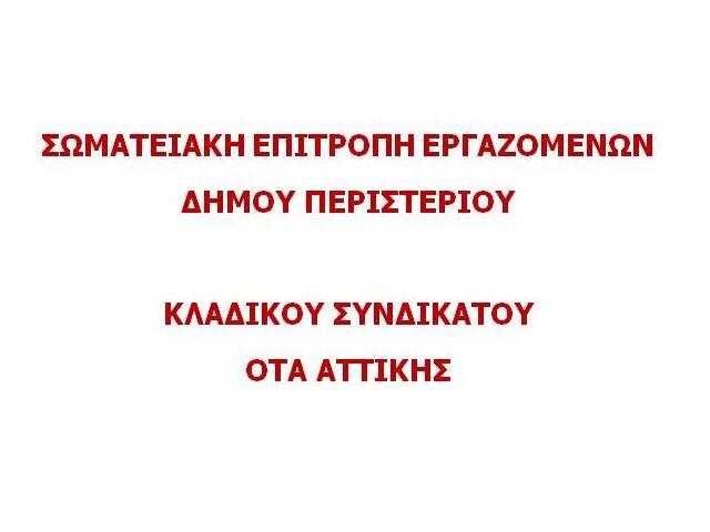 Παράνομη θεώρησε τάχα την κινητοποίηση των εργαζομένων η δημοτική αρχή Περιστερίου βγάζοντας επιλεκτικά σε αναφορά συνδικαλιστικά στελέχη του ταξικού κινήματος, που οργάνωσαν των δίκαιο αγώνα για την διεκδίκηση των δικαιωμάτων των εργαζομένων, αποδεικνύοντας ακόμα μια φορά, μετά από τις απολύσεις συναδέλφων, την πλήρη ευθυγράμμιση της με την αντεργατική πολίτικη και την καταστολή του αγώνα των εργαζομένων από την κυβέρνηση της Ν.Δ.