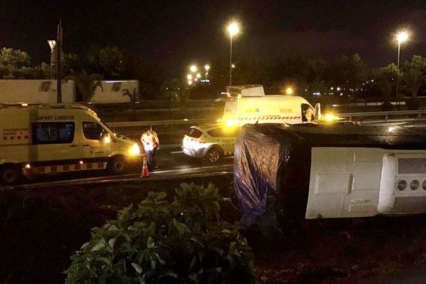 Λεωφορείο που μετέφερε τουρίστες πολλών εθνικοτήτων ανετράπη τη νύχτα στην Βαρκελώνη, με αποτέλεσμα να τραυματιστούν 23 εξ αυτών και ο οδηγός. Τρεις από τους τραυματίες είναι σε σοβαρή κατάσταση.