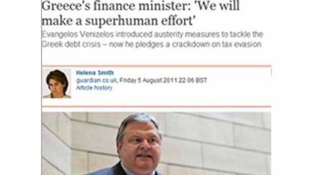 Το δημοσίευμα του Guardian έχει τίτλο: «Θα κάνουμε υπεράνθρωπη προσπάθεια» και ο συντάκτης του σημειώνει: «Ο Ευάγγελος Βενιζέλος έφερε μέτρα λιτότητας για να αντιμετωπίσει την ελληνική κρίση χρέους – τώρα υπόσχεται καταστολή της φοροδιαφυγής». Ο αντιπρόεδρος της κυβέρνησης σημειώνει: «Βρισκόμαστε στη μέση μιας μάχης. Μια μάχη για την εφαρμογή ενός προγράμματος δημοσιονομικής εξυγίανσης, μια μάχη για την εκτέλεση του προϋπολογισμού, μια μάχη για την επιβολή των ιδιωτικοποιήσεων».