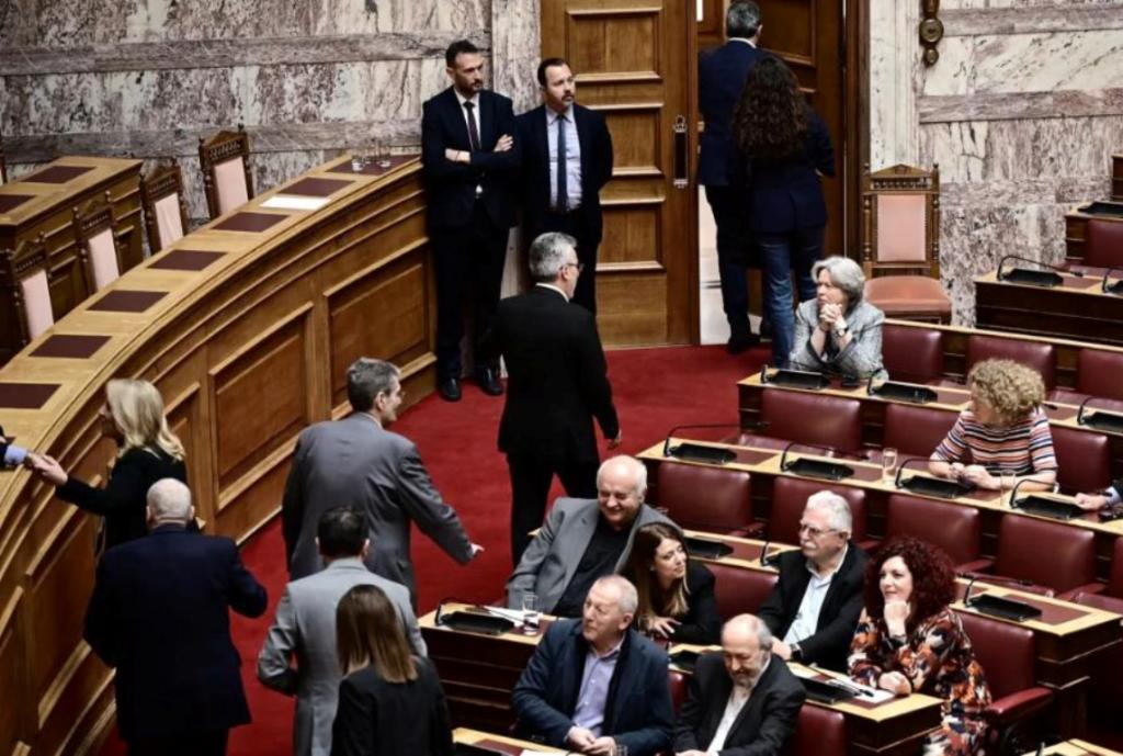 Το πολιτικό θερμόμετρο ανέβηκε από την έναρξη της διαδικασίας, με τον ΣΥΡΙΖΑ να αποχωρεί καταγγέλλοντας αντισυνταγματική και προσχηματική διαδικασία, ενώ τον ίδιο δρόμο ακολούθησαν και οι ανεξάρτητοι βουλευτές του Κινήματος Δημοκρατίας. Όπως σημείωσε ο Σωκράτης Φάμελλος, πρόεδρος της ΚΟ του ΣΥΡΙΖΑ, «η κυβέρνηση επιχειρεί να μπαζώσει όχι μόνο την αλήθεια για τα Τέμπη, αλλά και τη λειτουργία του Κοινοβουλίου».