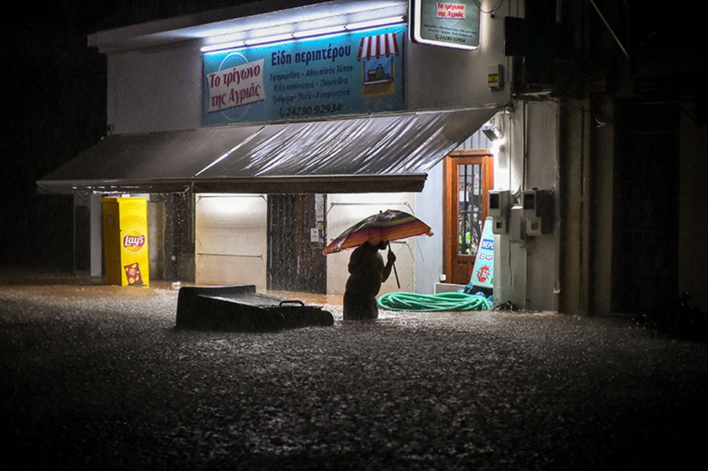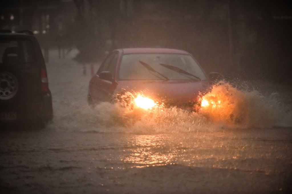 Οι δρόμοι είχαν μετατραπεί σε χειμάρρους και το νερό σε πολλές περιπτώσεις ξεπερνά και τα 50 εκατοστά.
