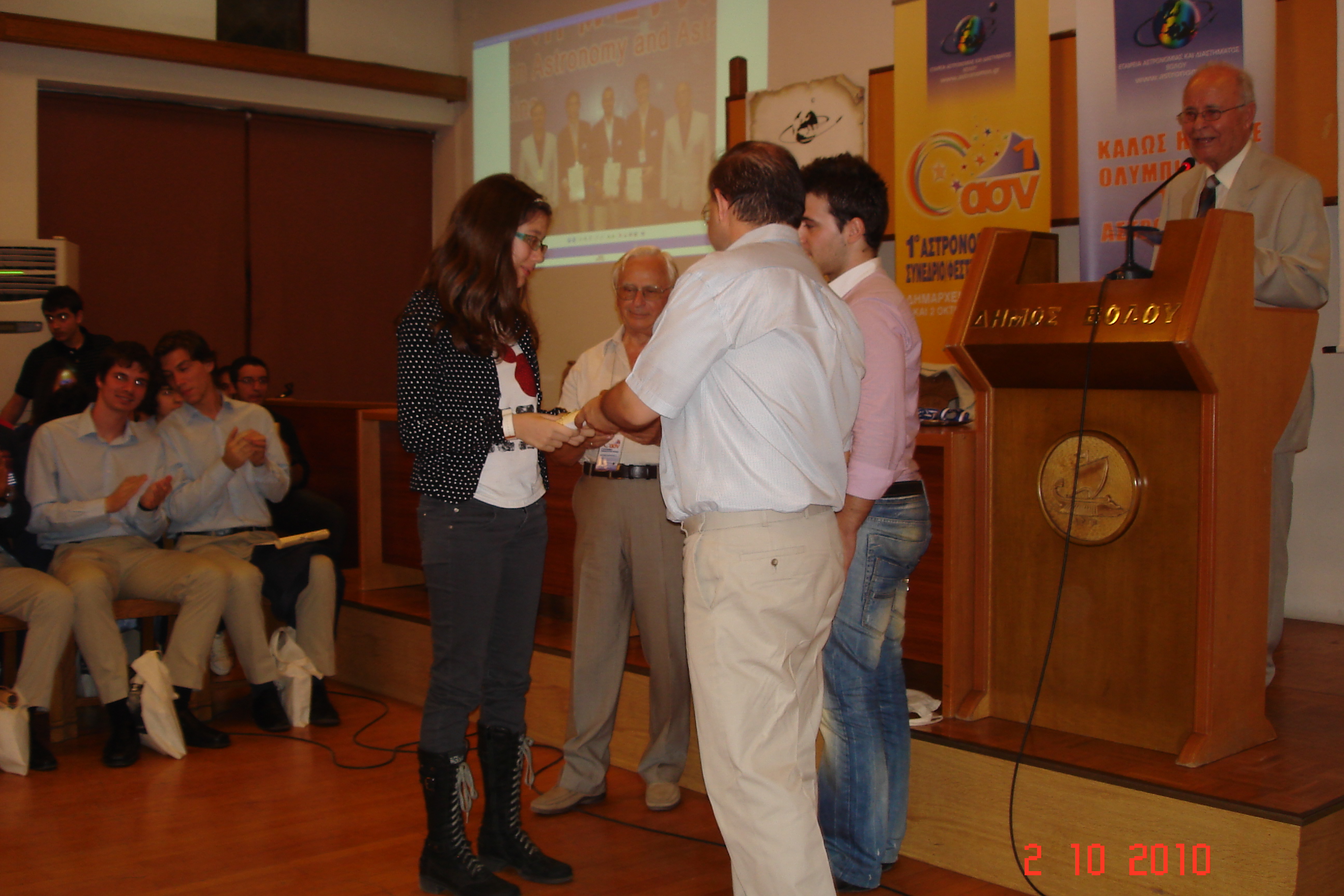 Η Πηνελόπη Μάγειρα, μαθήτρια της Β’ Γυμνασίου της Σύγχρονης Σχολής Σ. Αυγουλέα – Λιναρδάτου, βραβεύτηκε για τη συμμετοχή της στο Διαγωνισμό από την Εταιρεία Αστρονομίας και Διαστήματος, σε επίσημη τελετή που πραγματοποιήθηκε στο Δημαρχείο του Βόλου, στις 2 Οκτωβρίου 2010.