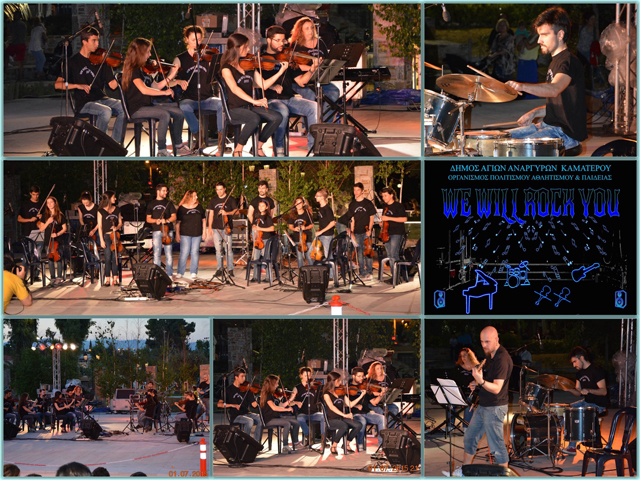 Ο Οργανισμός Πολιτισμού Αθλητισμού και Παιδείας του Δήμου Αγίων Αναργύρων-Καματερού συμμετείχε με το μουσικό σχήμα”We will Rock You”αποτελούμενο από καθηγητές και σπουδαστές του Δημοτικού Ωδείου όπως τον κ.Αλέξανδρο Παπαδιαμάντη (καθ.βιολιού), την κ.Χαρά Παπαλεωνίδα (καθ.πιάνου), τον κ. Παναγιώτη Κριτσέλη (ηλεκτρ.κιθάρα) και τον κ. Κώστα Χριστοδούλου (ντραμς).