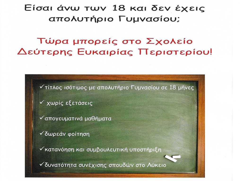 Το Σ.Δ.Ε. Περιστερίου μπορεί να καλύψει τις ανάγκες των πολιτών και να τους προσφέρει τη δεύτερη ευκαιρία που περίμεναν.