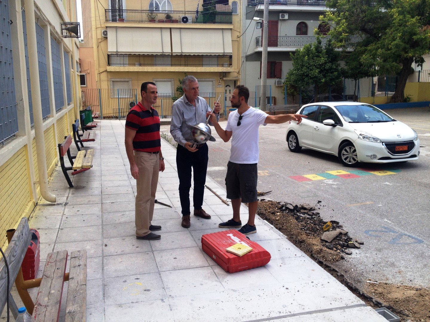 Σύμφωνα με ανάρτηση του Δημάρχου σε μέσο κοινωνικής δικτύωσης, οι δυο τους βρέθηκαν σήμερα στο 18ο Δημοτικό Σχολείο, 47ο και 49ο νηπιαγωγείο, όπου και πραγματοποιούνται εργασίες για την τοποθέτηση των αλεξικέραυνων.