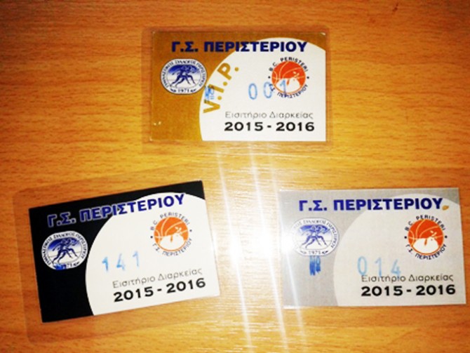 Ο Γ.Σ.ΠΕΡΙΣΤΕΡΙΟΥ ανακοινώνει, ότι από την Δευτέρα 12 Οκτωβρίου 2015, είναι διαθέσιμες οι κάρτες διαρκείας, για την αγωνιστική περίοδο 2015 – 2016 και το πρωτάθλημα της Α2 κατηγορίας που θα αγωνιστεί φέτος.