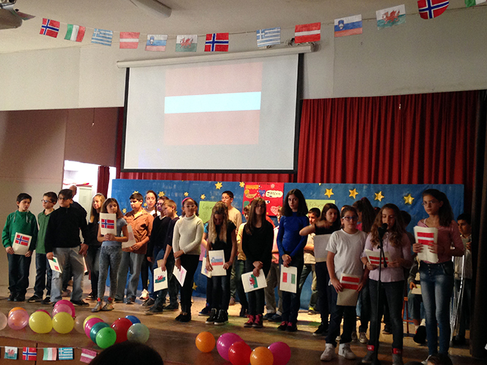 Στην εκδήλωση που πραγματοποιήθηκε στο 18ο Δημοτικό Σχολείο Περιστερίου έγινε η υποδοχή των εκπαιδευτικών από τις ευρωπαϊκές χώρες, με παρουσίαση της κάθε χώρας ξεχωριστά.