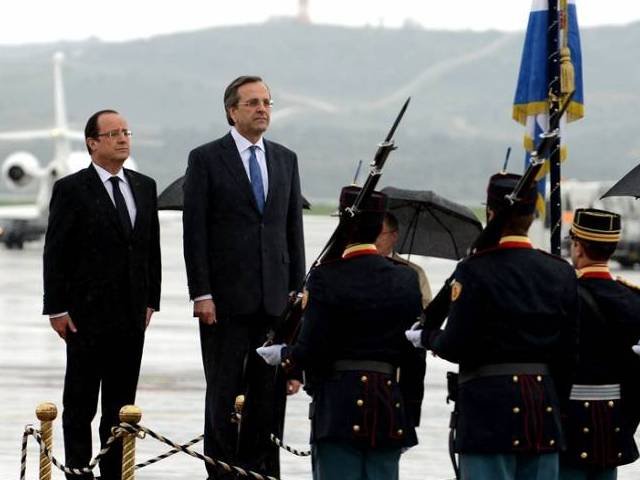 Ξεκίνησε η συνάντηση του έλληνα πρωθυπουργού Α. Σαμαρά με το γάλλο πρόεδρο Φ. Ολάντ.