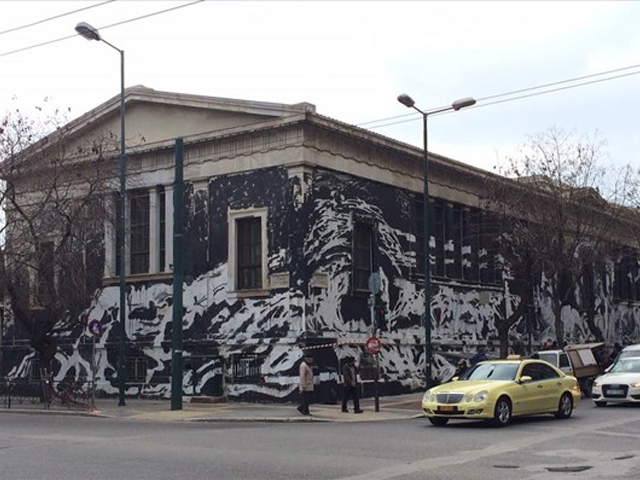 Ξεκίνησε ο καθαρισμός του γκράφιτι στο ιστορικό κτήριο του Πολυτεχνείου που βρίσκεται από την πλευρά της οδού Στουρνάρη.