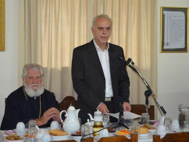 Στον χαιρετισμό που απεύθυνε ο Σεβασμιότατος Μητροπολίτης Περιστερίου Χρυσόστομος ανάφερε τα παρακάτω: “…θα ήθελα να ευχαριστήσω το κ. Βαθιώτη για την ουσιαστική και σπουδαιότατη βοήθεια που παρέχει διότι χάρη στις ενέργειες του κ. Βαθιώτη και φίλων του επιστημόνων κατορθώσαμε να στήσουμε το τεράστιο αυτό κοινωνικό έργο που είναι κάτι ασύλληπτο για τα ελληνικά δεδομένα και την Ιερά Μητρόπολη. Ήταν ασύλληπτο να μπορέσει για μια Μητρόπολη να οργανωθεί το κοινωνικό φροντιστήριο σε τέτοια βάση και να καρποφορήσει περισσότερο από κάθε άλλο θεσμό για τις ανάγκες του Περιστεριώτικου λαού κατά την εποχή της μεγάλης λαίλαπας που σαρώνει την Ελλάδα.»