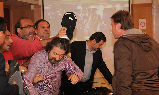 «Έπεσαν» μπουνιές, του πέταξαν μπουκάλια και αναγκάστηκε να αποχωρήσει συνοδευόμενος από την αίθουσα!