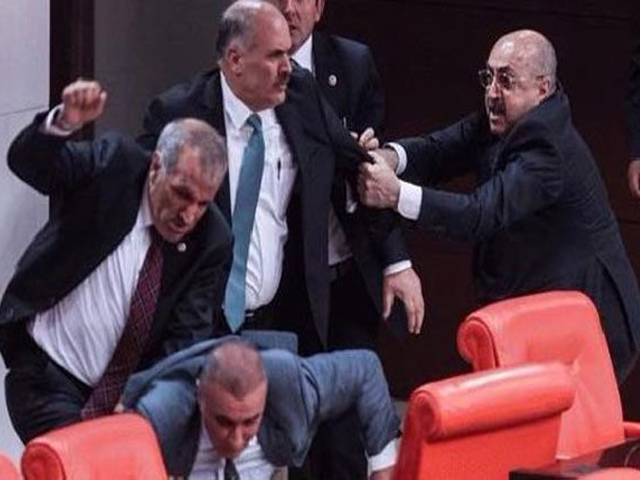 Πέντε βουλευτές της τουρκικής αντιπολίτευσης τραυματίσθηκαν στη διάρκεια της νύκτας, όταν βουλευτές ήρθαν στα χέρια πριν από την προγραμματισμένη έναρξη των συζητήσεων στην Εθνοσυνέλευση για ιδιαίτερα αμφιλεγόμενο νομοσχέδιο της ισλαμοσυντηρητικής κυβέρνησης, το οποίο ενισχύει τις εξουσίες της αστυνομίας.