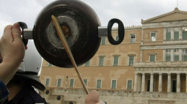 Οι διαδηλωτές είχαν συγκεντρωθεί από το απόγευμα έξω στην πλατεία Συντάγματος, ενώ μέσα στο Κοινοβούλιο γινόταν η ψηφοφορία για το ειδικό τέλος στην ακίνητη περιουσία.