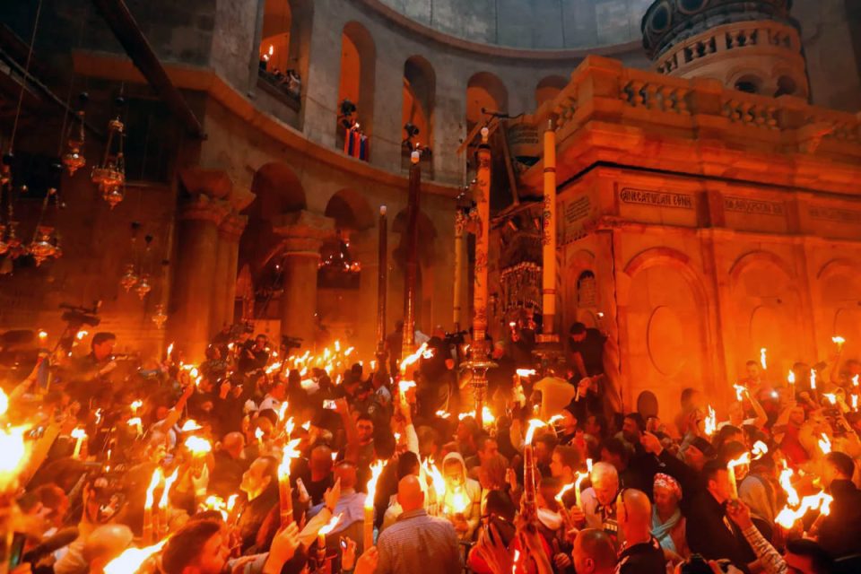 Υπό αυστηρά μέτρα ασφαλείας, λόγω του πολέμου στη Λωρίδα της Γάζας, πραγματοποιήθηκε η τελετή αφής του Αγίου Φωτός στo Ναό της Αναστάσεως στα Ιεροσόλυμα.
