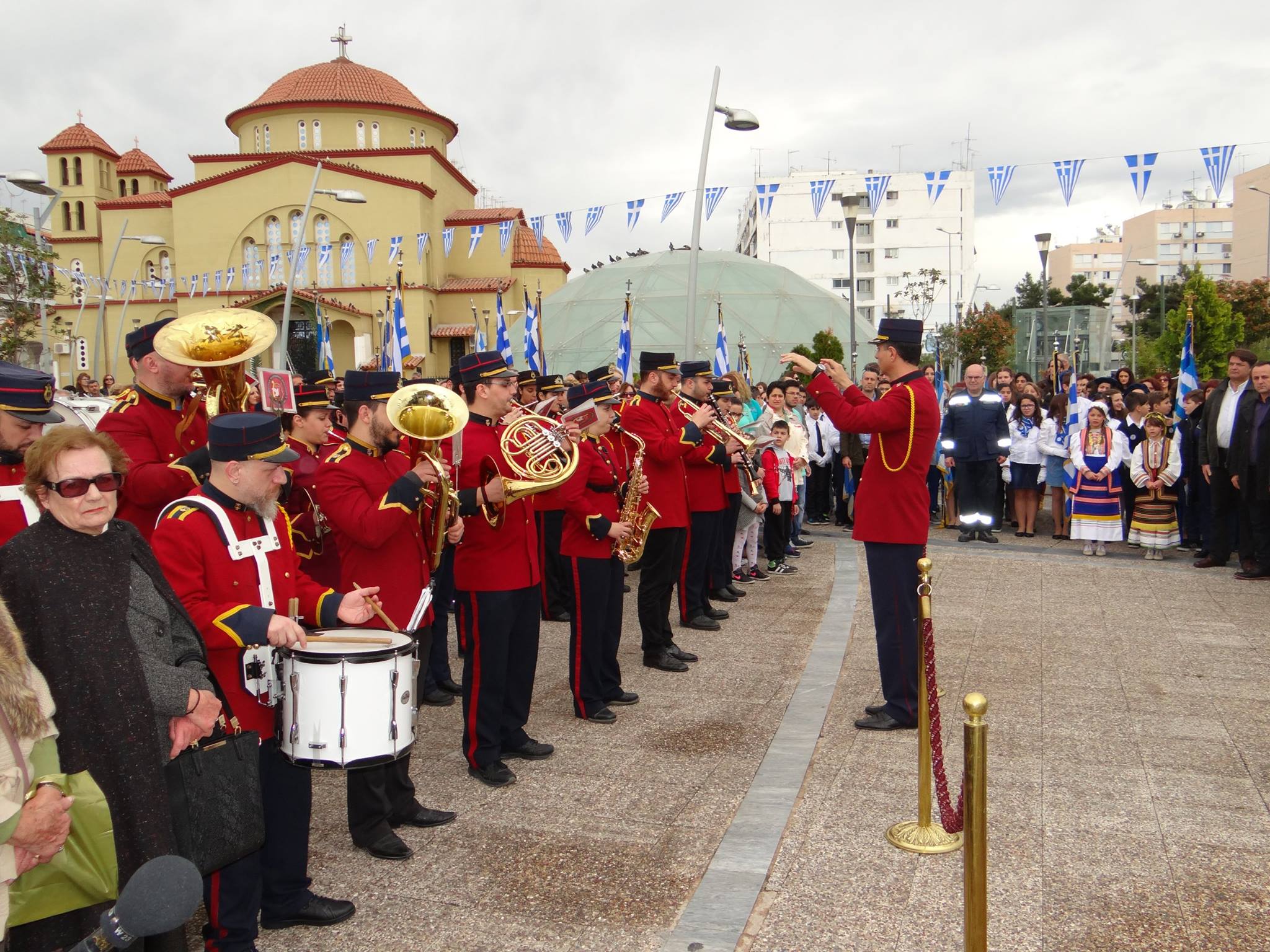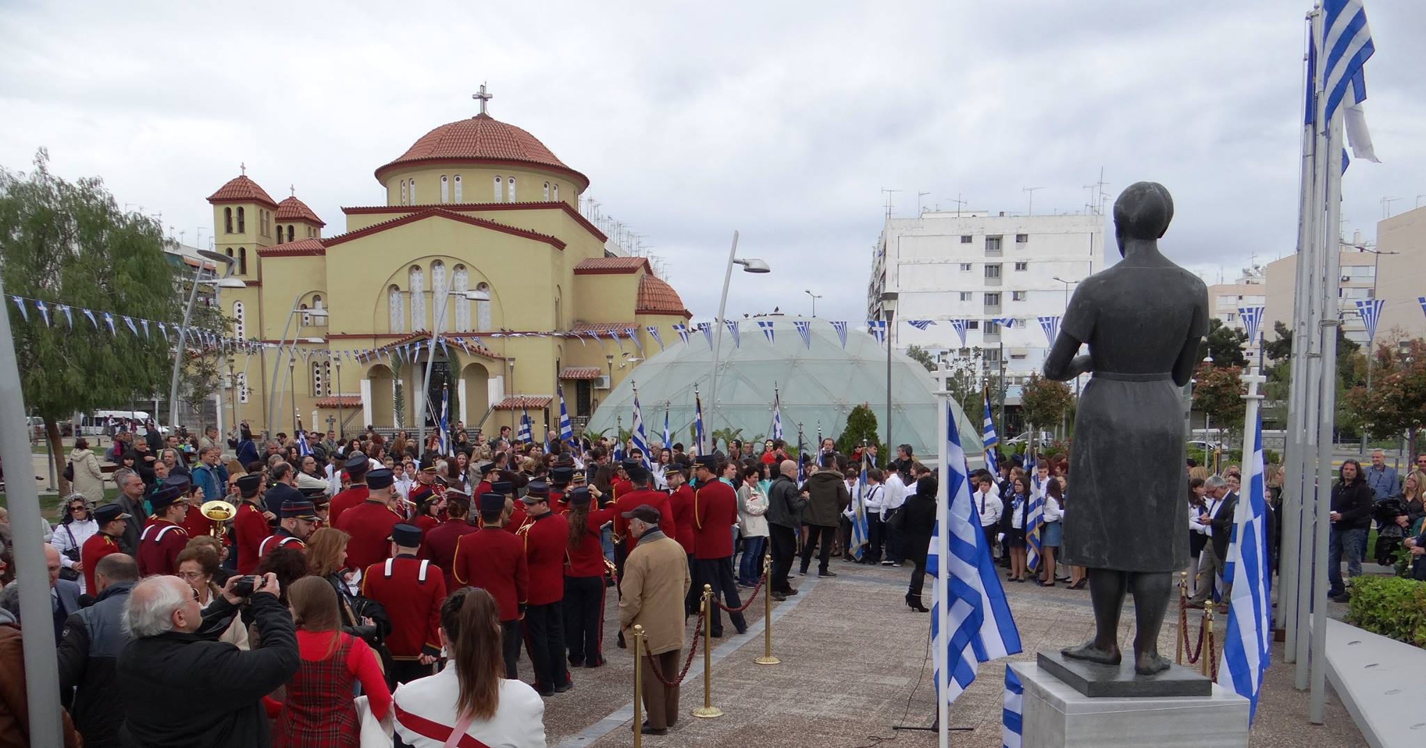 Στις 11 το πρωί πραγματοποιήθηκε το προσκύνημα και η κατάθεση στεφάνων στο Ηρώο επί της πλατείας Δημοκρατίας (νέου Δημαρχείου) από μαθητές, σπουδαστές, προσκόπους, οδηγούς, κλπ.