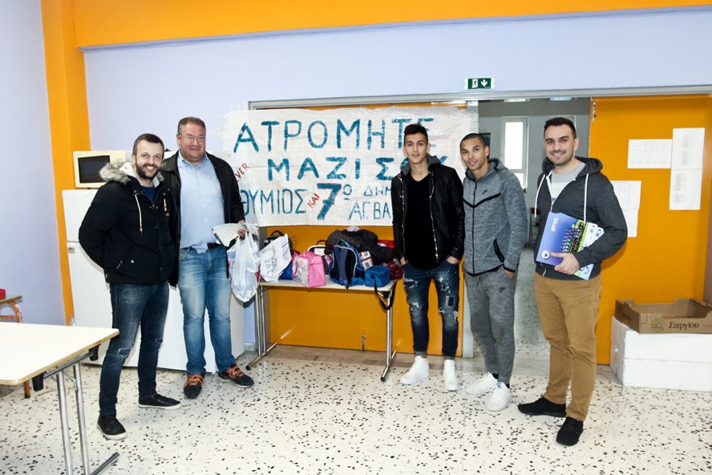 Με τον ύμνο της ομάδας να παίζει δυνατά και ένα πανό να κρέμεται λέγοντας «Ατρόμητε μαζί σου», οι μαθητές του 7ου δημοτικού σχολείου Αγίας Βαρβάρας υποδέχτηκαν αντιπροσωπεία της ομάδας μας.