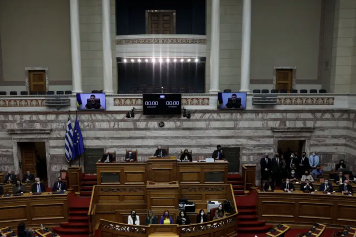 Ο Βολοντίμιρ Ζελένσκι μίλησε στη Βουλή των Ελλήνων κι έστειλε μήνυμα «ελευθερία ή θάνατος» ζητώντας από τους Ελληνες να δημιουργηθεί μια νέα «Φιλική Εταιρεία», αυτή τη φορά στην Ελλάδα αντί της Οδησσού επί Επαναστάσεως του 1821, που θα συμβάλλει στο να σωθεί η Μαριούπολη.